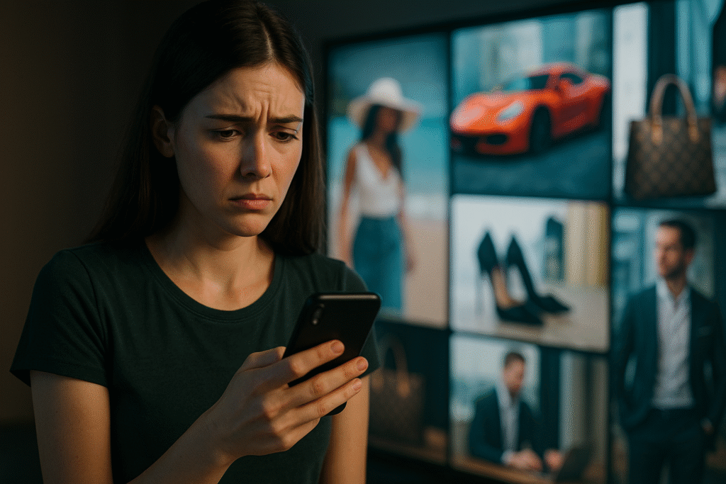 A exposição constante ao luxo alheio ativa poderosos gatilhos psicológicos de inadequação. Estes gatilhos funcionam através de diversos mecanismos: