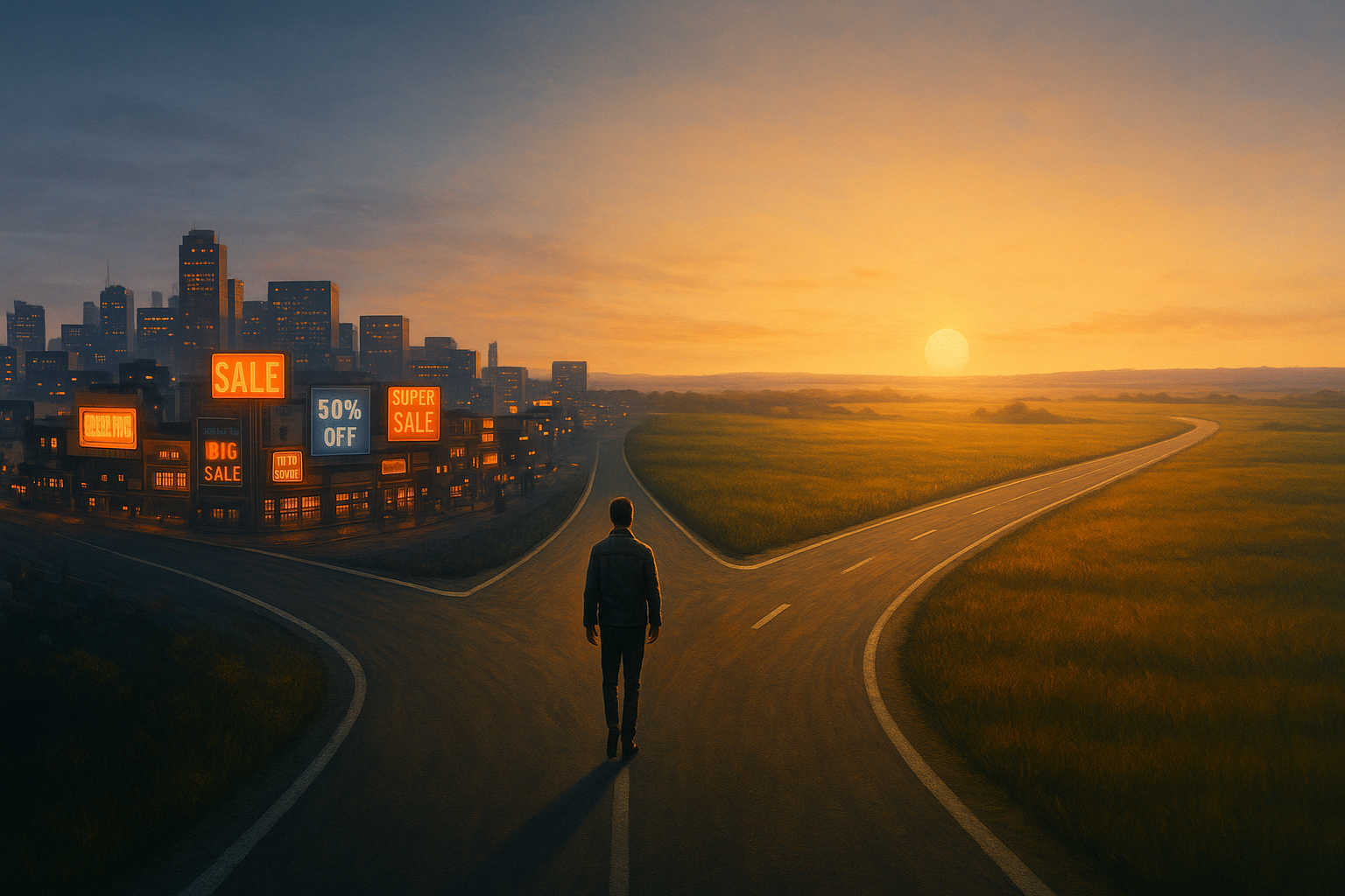 Imagine que você está em dois caminhos. No primeiro, você passa os próximos 10 anos perseguindo recompensas, calculando cashbacks, estudando tabelas de milhas, forçando gastos para “otimizar” benefícios. No final, você talvez tenha economizado alguns milhares de reais, mas gastou dezenas de milhares a mais.